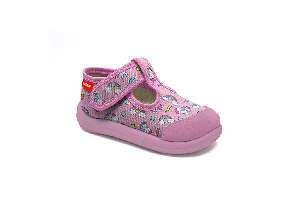 Dětské bačkory Milami jsou extrémně lehké s velmi ohebnou podrážkou a širokou, prostornou špičkou. Proto se dají považovat za kompromis mezi barefootem a klasickou obuví. Špička je opatřena praktickým okopem z broušené kůže. Bačkůrky mají zpevněný opatek a vyjímatelnou pěnovou stélku s nášlapem z kůže (možnost kontroly velikosti, náznak podpory podélné klenby).