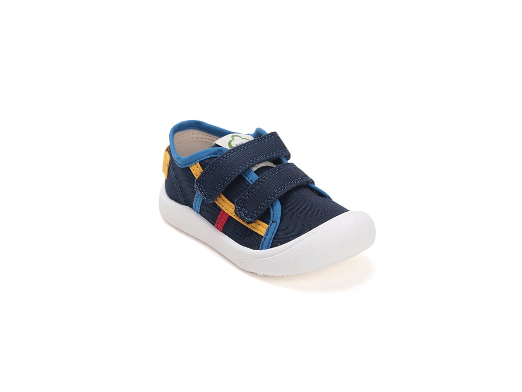 Lehoučké barefoot chlapecké plátěné boty s praktickým okopem, které lze využít jako přezůvky.