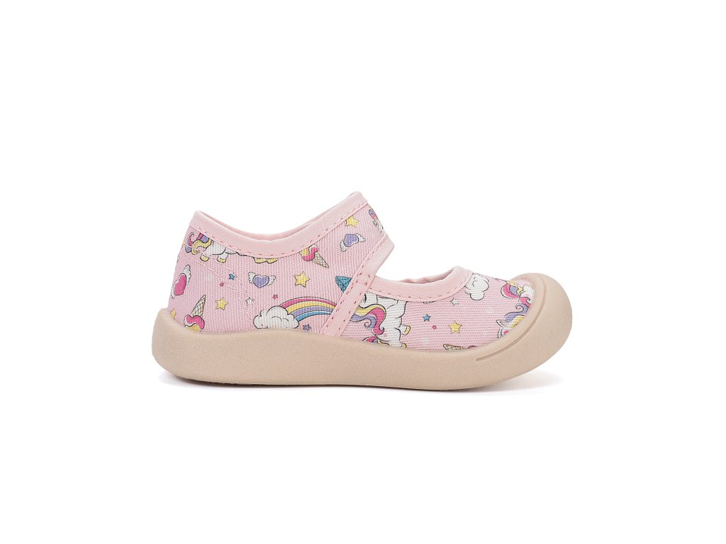 Lehoučké barefoot dívčí plátěné balerínky s praktickým okopem, které lze využít jako přezůvky.