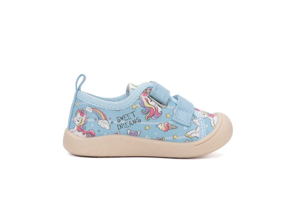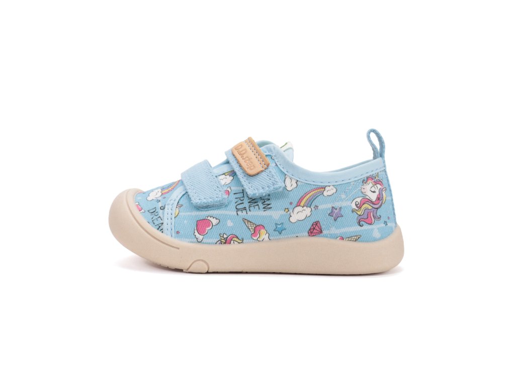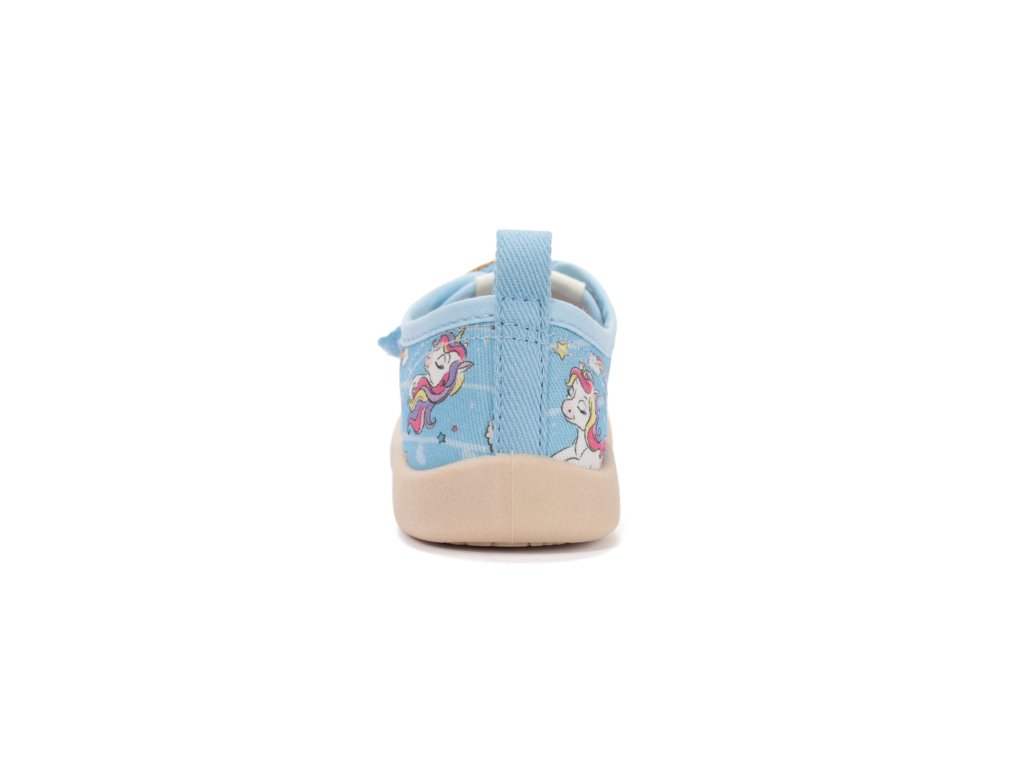 Lehoučké barefoot dívčí plátěné boty s praktickým okopem, které lze využít jako přezůvky.