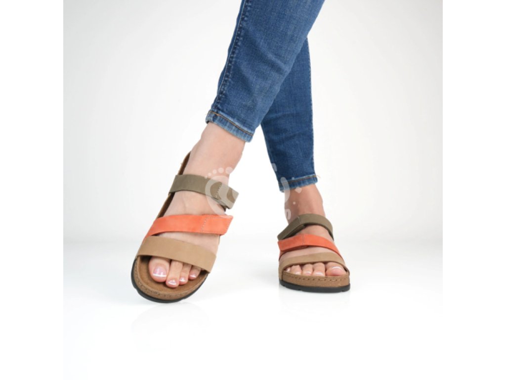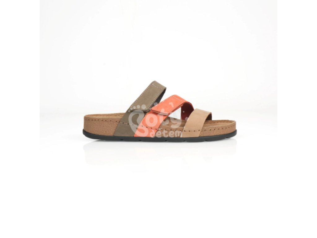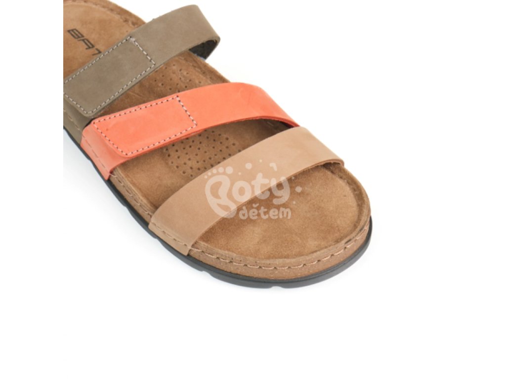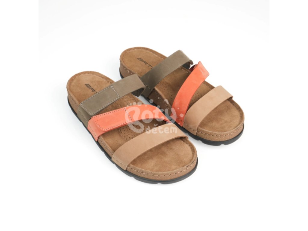 Vyberte si Batz Samantha Sand mix pantofle, které vnesou do každého vašeho kroku pestrou podzimní atmosféru. Kombinace odstínů khaki, oranžové a béžové vytváří harmonický celek a dodává tomuto modelu s nubukovou koženou vrchní částí čistý, ale zároveň výrazný vzhled. Anatomické tvarování poskytuje správnou oporu chodidlu, zatímco ze tří pásků jsou dva jednoduše nastavitelné, aby se obuv dokonale přizpůsobila a zajistila individuální pohodlí při nošení.