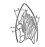 Noha obutá v obuvi s vysokým podpatkem-posun těžiště dopředu, deformace prstů v obuvi se špičatou špičkou
