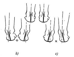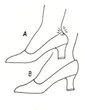 a) obuv s příliš uzavřenou linií opatku tlačí na patu,