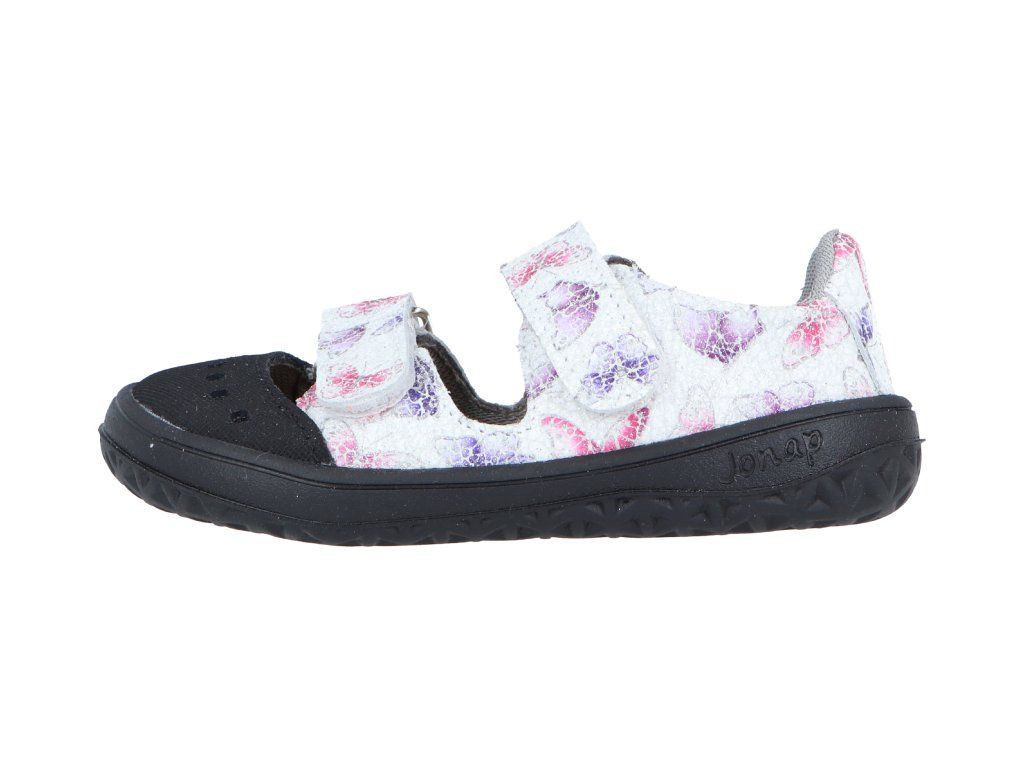 Jonap barefoot kožené sandálky Fella bílí motýlci