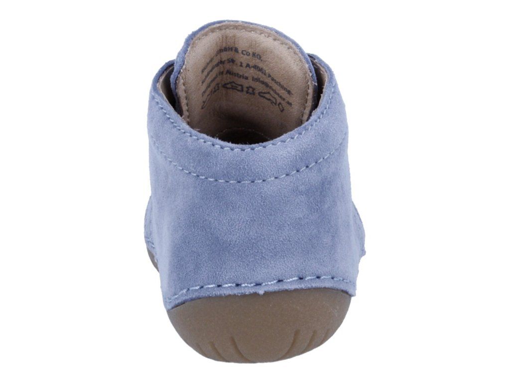 Moje první botičky - ještě leze, ale už dělá i první krůčky, pak tyto botičky jsou právě pro ně, pro ty nejmenší děti. Díky měkkému koženému semiši a vysoké pružnosti podešve (flexibilní rolovací podešev) je velmi přizpůsobivá a ideální pro první kroky. Zvýšená podešev chrání zejména citlivé prsty. Vysoce kvalitní podšívka z měkké kůže zajišťuje příjemné klima nohou.
