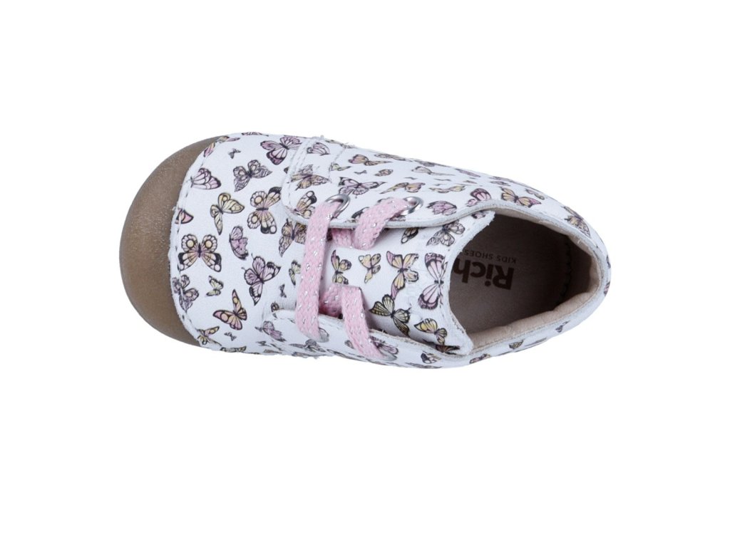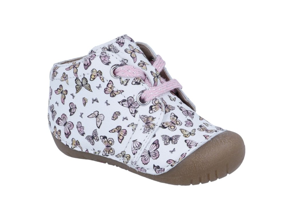 Moje první botičky - ještě leze, ale už dělá i první krůčky, pak tyto botičky jsou právě pro ně, pro ty nejmenší děti. Díky měkkému koženému semiši a vysoké pružnosti podešve (flexibilní rolovací podešev) je velmi přizpůsobivá a ideální pro první kroky. Zvýšená podešev chrání zejména citlivé prsty. Vysoce kvalitní podšívka z měkké kůže zajišťuje příjemné klima nohou.