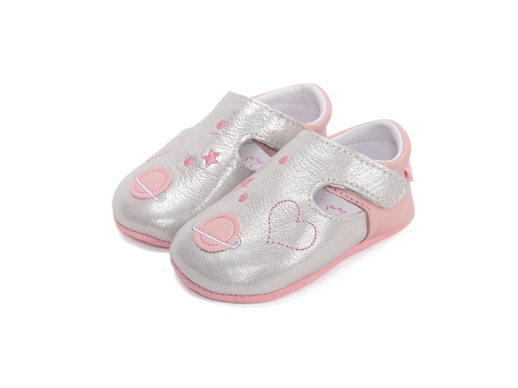 • ohebné měkké kožené podešve s protikluzem ve tvaru loga