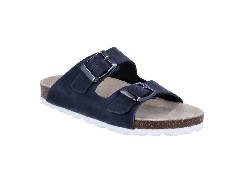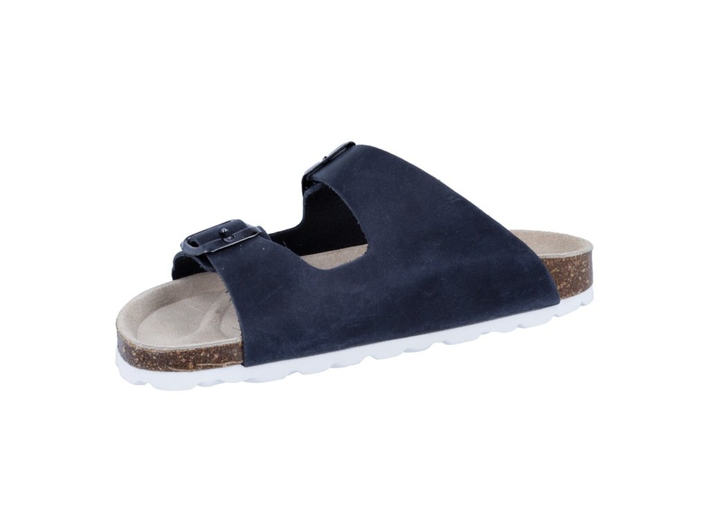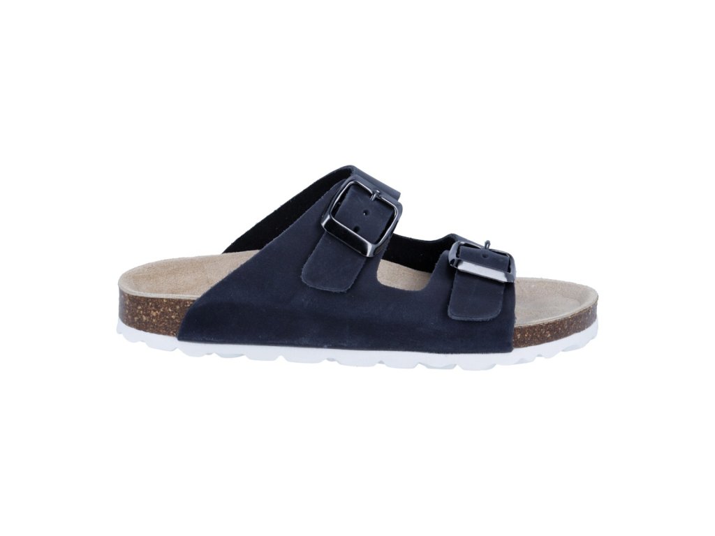 Kožené pantofle s koženou stélkou a pravým korkem. Vysoce kvalitní tvarovaná kožená stélka zvyšuje pohodlí nohou. Zapínání na sponu přes nárt umožňuje snadné obouvání. Extrémně lehká, pružná a ohebná podrážka.