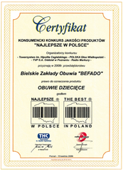 Dětské botičky BEFADO mají certifikát „Zdrowa stopa“ (v překladu Zdravé chodidlo), který uděluje Institut koženého průmyslu v Polsku. Tento certifikát je obdobou certifikátu ŽIRAFA v České republice. Je to záruka, že obuv BEFADO zabezpečuje správný vývoj dětských nožiček v prvních letech života.
