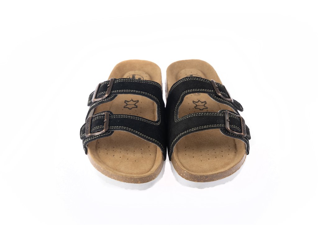 Celokožená zdravotní pantofle se speciálně vyvinutou tvarovanou koženou stélkou, která brání tvrdému nárazu pří došlapu a zároveň se přesně vytvaruje chodidlu. Díky kvalitnímu materiálu udržuje správný tvar klenby. Pásky jsou celokožené a na vnitřní straně pásku je měkká kůže, která Vaši nohu udrží ve správné pozici aby neklouzala. Spony drží kovové čepy a díky tomu můžete obout obuv, jak naboso, tak i v ponožkách nebo silonkách. Nestane se tedy, že by se Vám poškodily. Podrážka je z speciálního materiálu vyvinuta tak, aby bylo možné obuv nosit, jak ve vnitřních prostorách tak i ve venkovních.