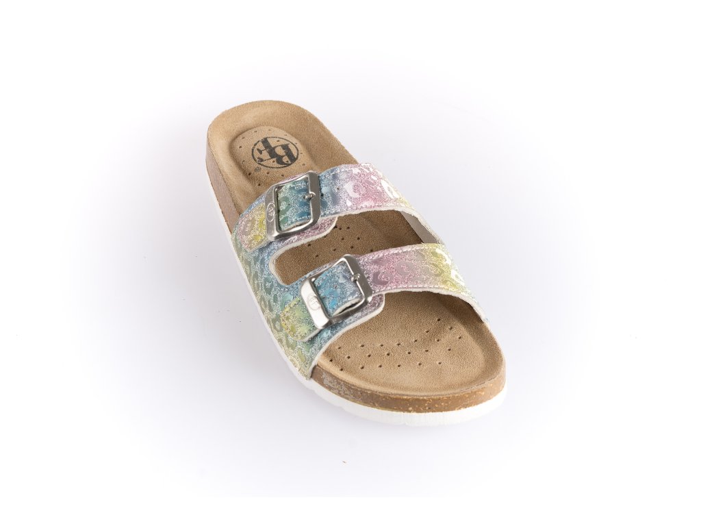 Celokožená zdravotní pantofle se speciálně vyvinutou tvarovanou koženou stélkou, která brání tvrdému nárazu pří došlapu a zároveň se přesně vytvaruje chodidlu. Díky kvalitnímu materiálu udržuje správný tvar klenby. Pásky jsou celokožené a na vnitřní straně pásku je měkká kůže, která Vaši nohu udrží ve správné pozici aby neklouzala. Spony drží kovové čepy a díky tomu můžete obout obuv, jak naboso, tak i v ponožkách nebo silonkách. Nestane se tedy, že by se Vám poškodily. Podrážka je z speciálního materiálu vyvinuta tak, aby bylo možné obuv nosit, jak ve vnitřních prostorách tak i ve venkovních.